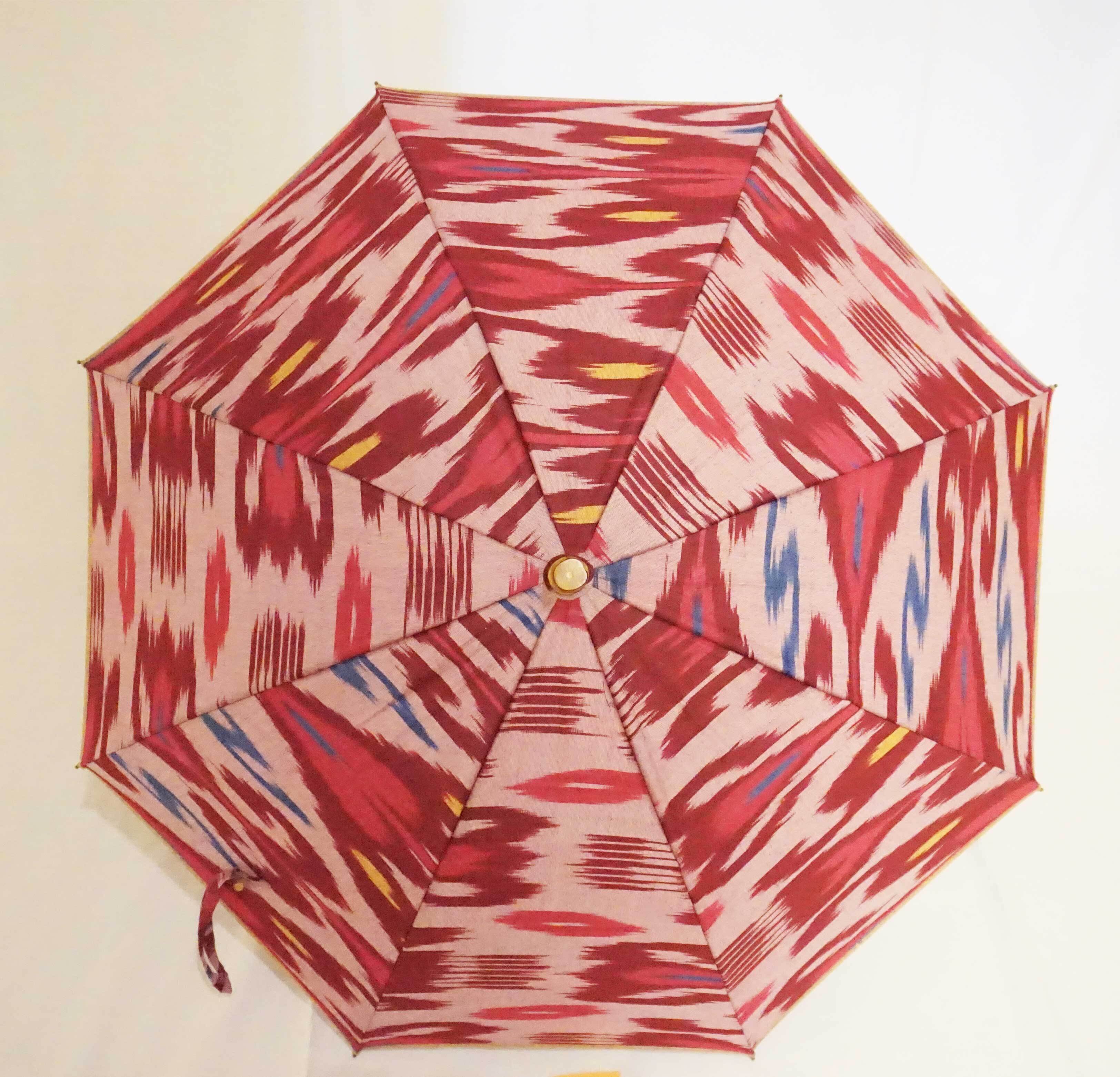 トルコの伝統工芸染織りイカット(IKAT 絣)木綿を、日本の傘職人が貼り上げました。アナハンでは、愛着をこめて”トルコガスリ”と呼びます。日本とトルコの職人技が、同じ表情はふたつとない、唯一無二です。